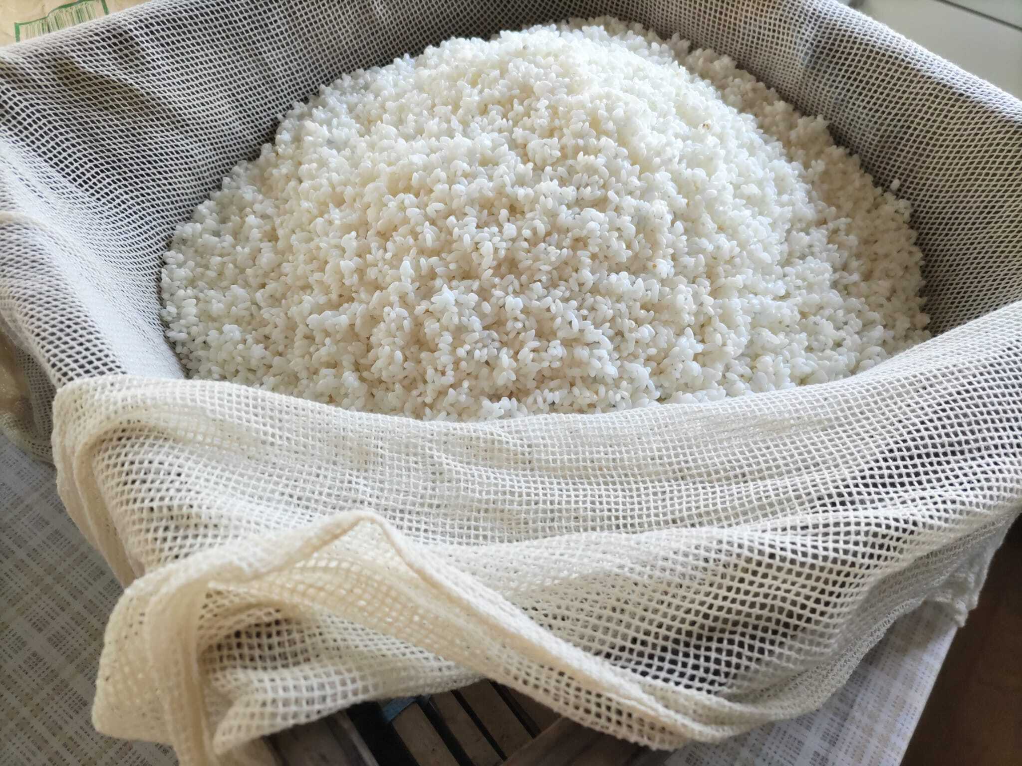 蒸したお米に白いフワフワの菌糸が生えている様子が、